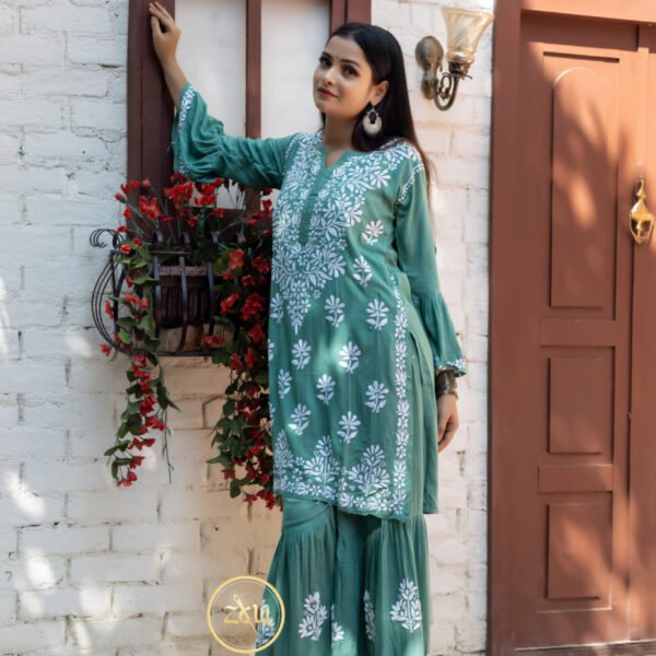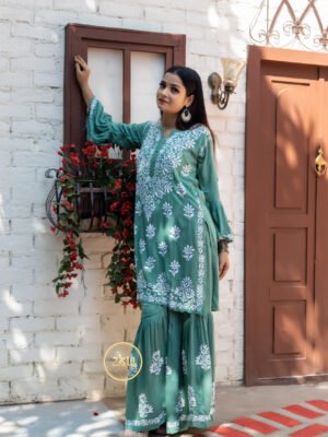 ZCW Modal Chikankari 2PC Women’s Gharara Set – Pista