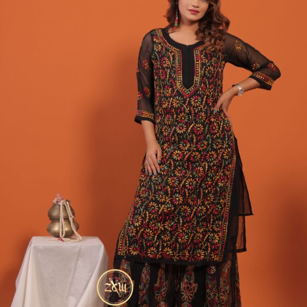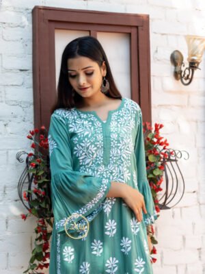 Aliyah Georgette Chikankari Women’s 2 PC Long Set – Multi Thread
