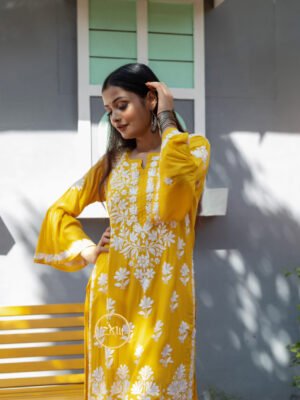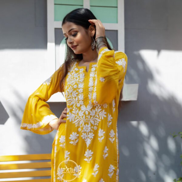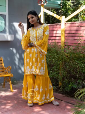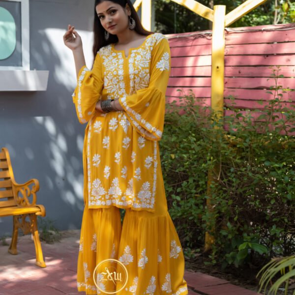 ZCW Modal Chikankari 2PC Women’s Gharara Set – Mustard