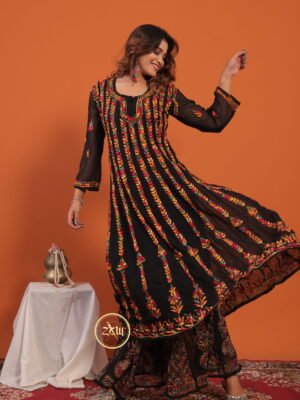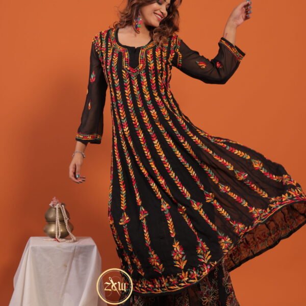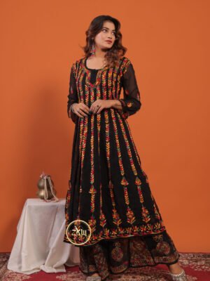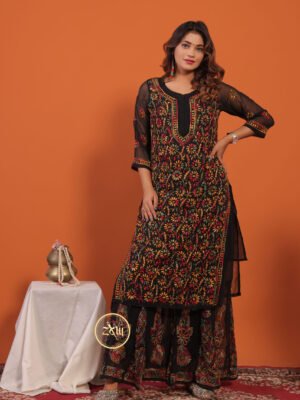 ZCW Georgette Anarkali Sharara 2PC Long Women’s Set – Multi