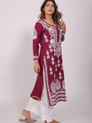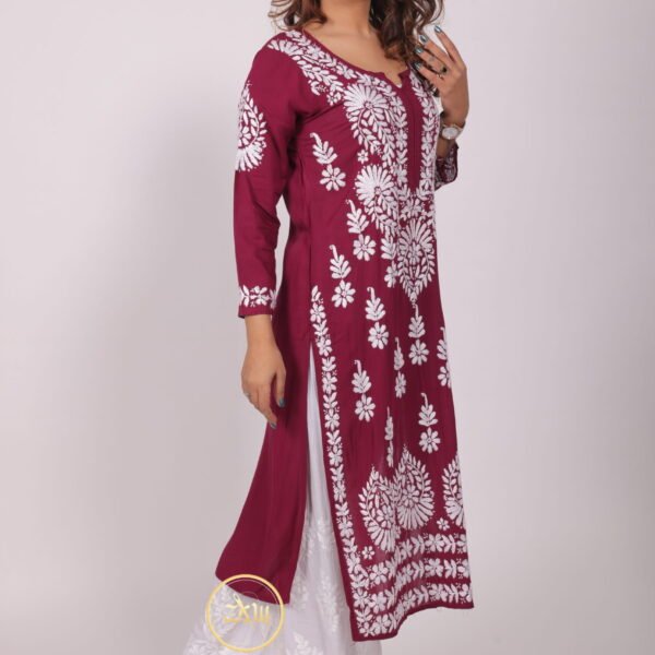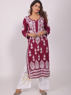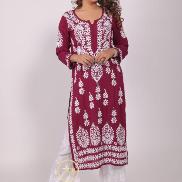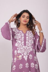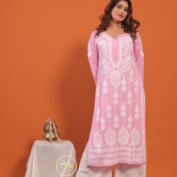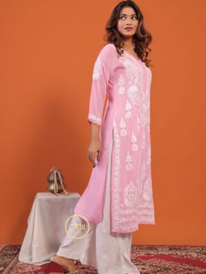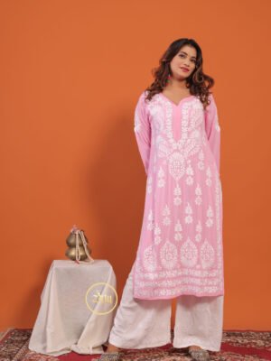 ZCW Modal Chikankari Women’s Long Kurti – Baby Pink