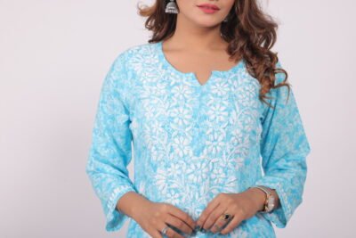 ZCW Modal Premium Chikankari Women’s Long Kurti – Navy Blue