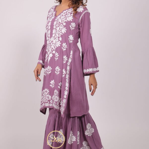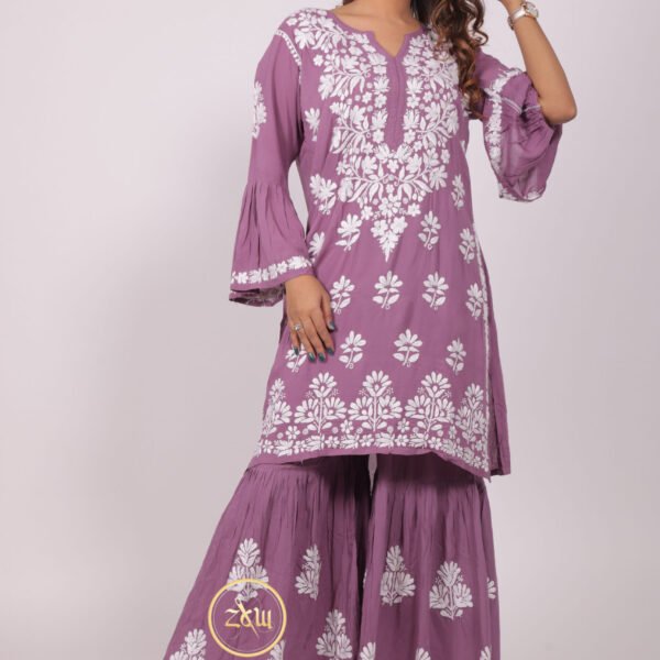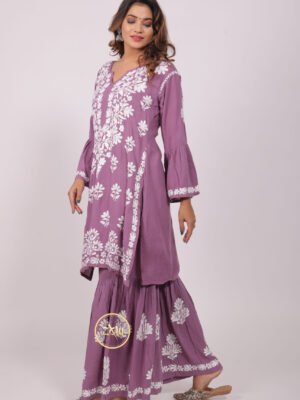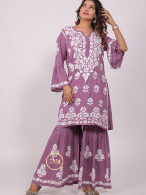 ZCW Modal Chikankari 2PC Women’s Gharara Set – Mauve