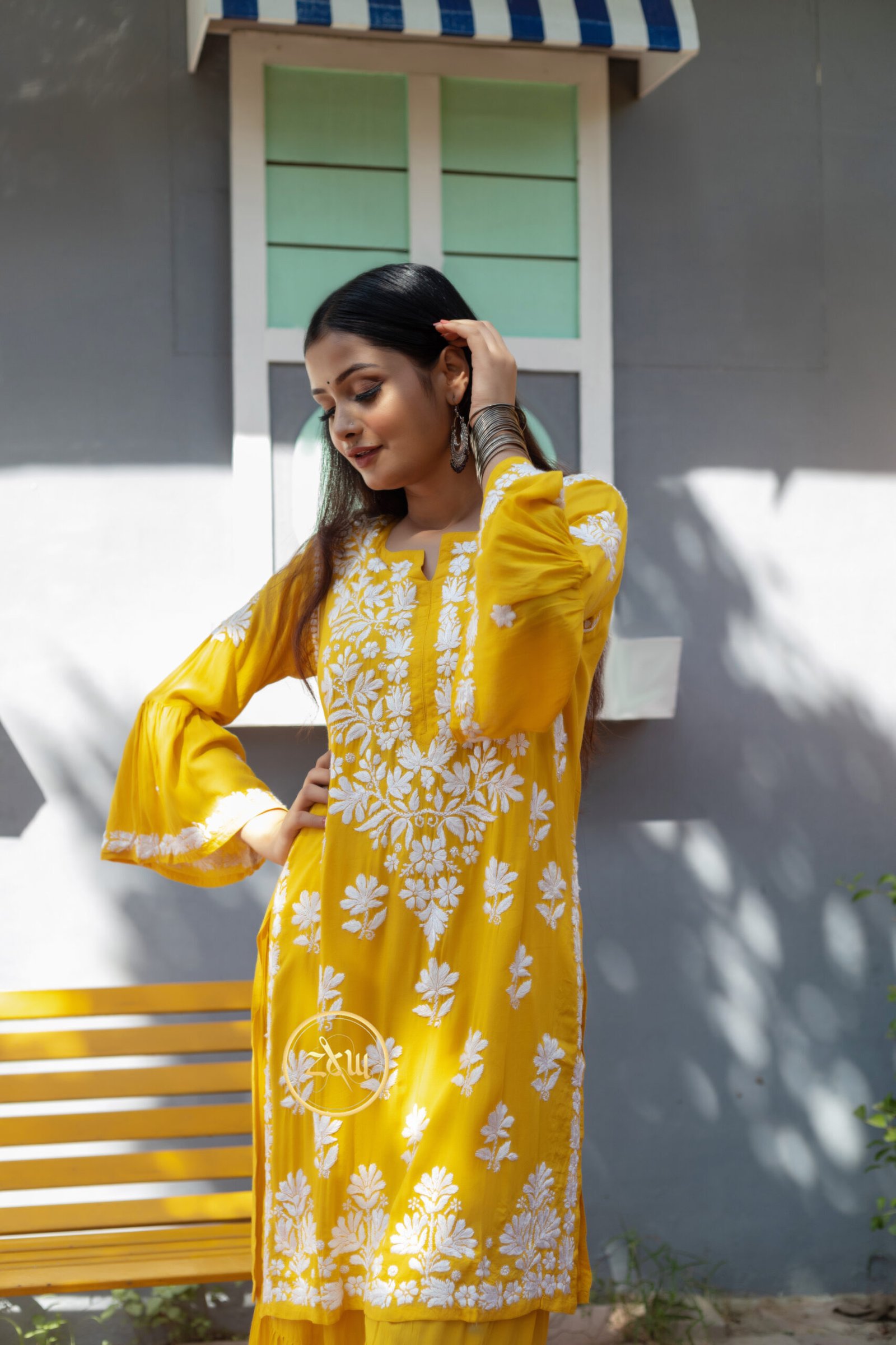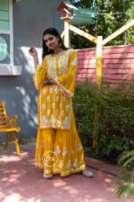 ZCW Modal Chikankari 2PC Women’s Gharara Set – Mustard